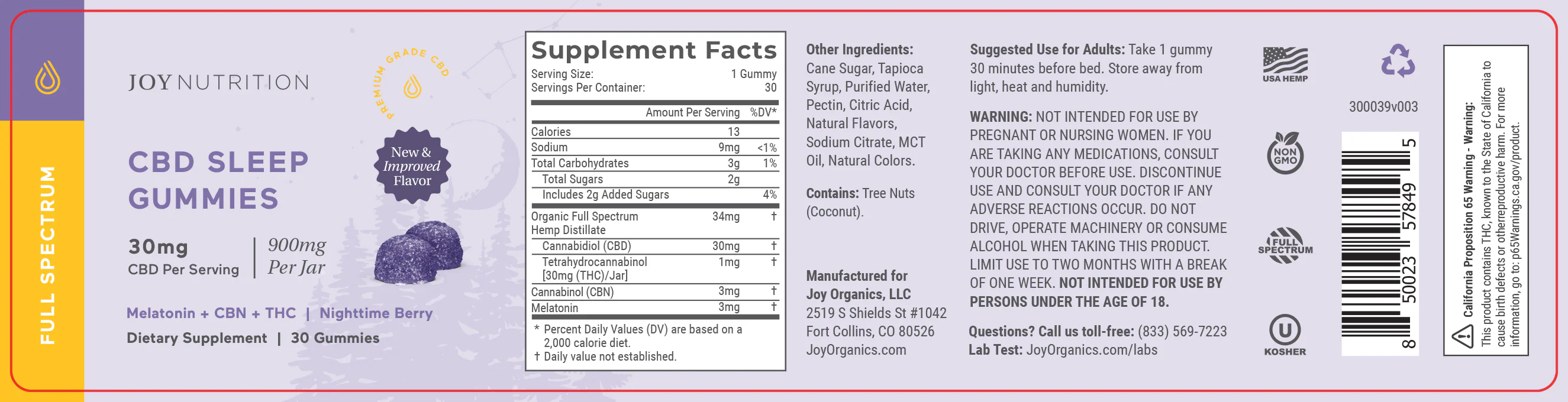- 30mg of CBD, 3mg of CBN, & 1mg of THC